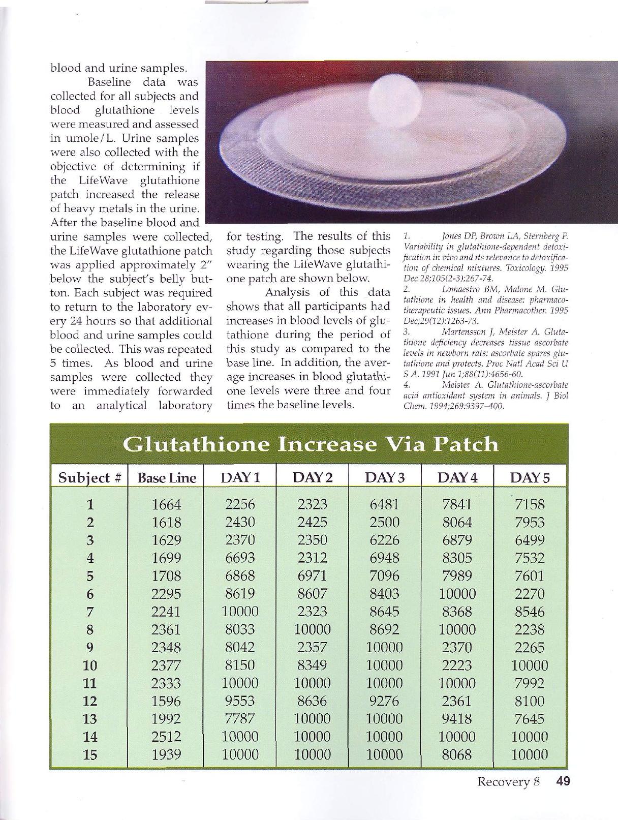 Клинические исследования с использованием анализов крови показывают, что средний рост глутатиона более чем в три раза в течение 24 часов.